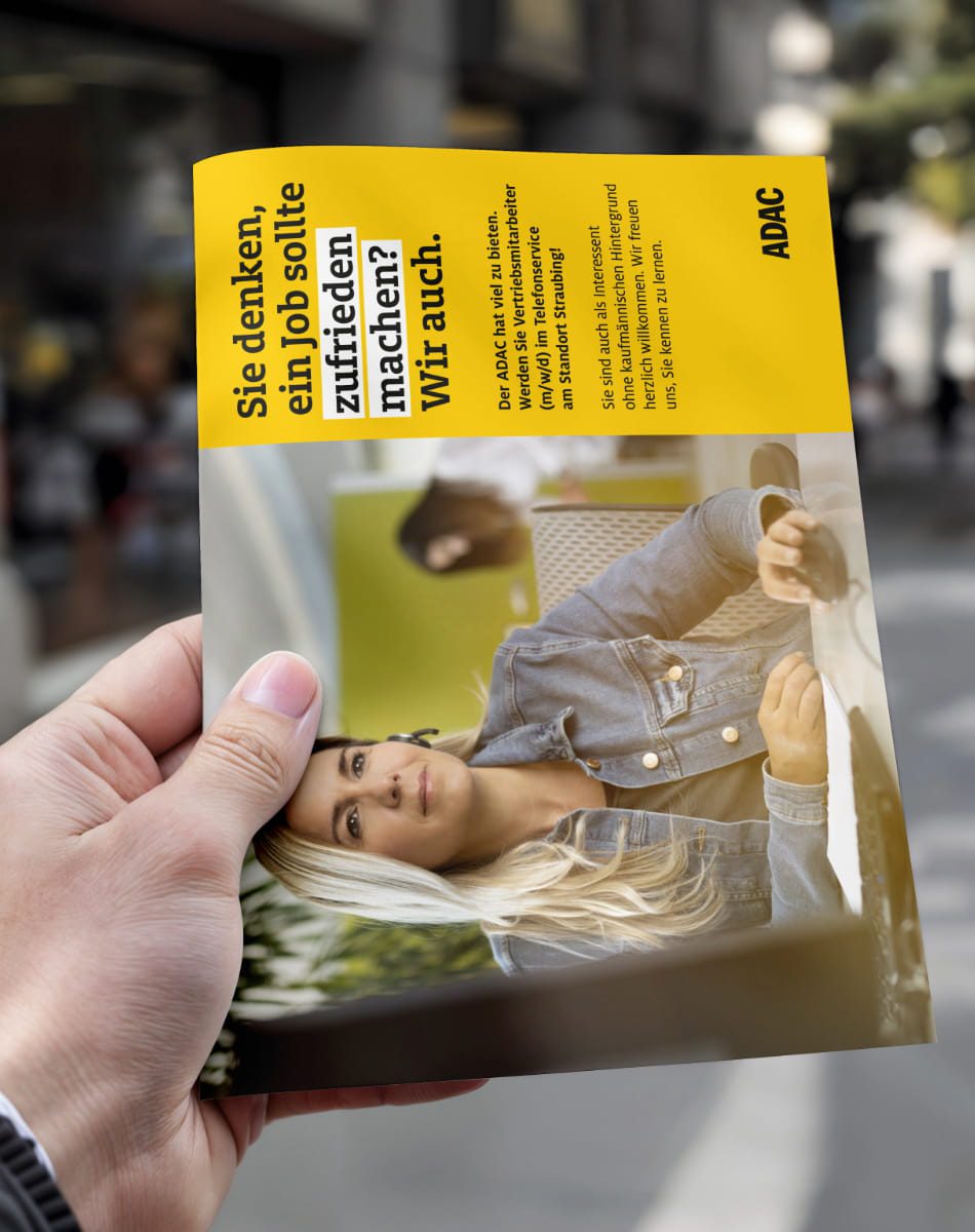 Im Zentrum der Kommunikation stand zudem die Entwicklung einer ganzheitlichen Karriere-Kampagne. Ziel war es, den ADAC als vielseitigen, modernen Arbeitgeber zu positionieren und strategische Botschaften in ein prägnantes Kampagnendesign zu übersetzen. Neben digitalen Motiven entstanden zielgruppenspezifische Printmedien, darunter Karriere-Flyer, die potenzielle Bewerber authentisch und direkt ansprechen.