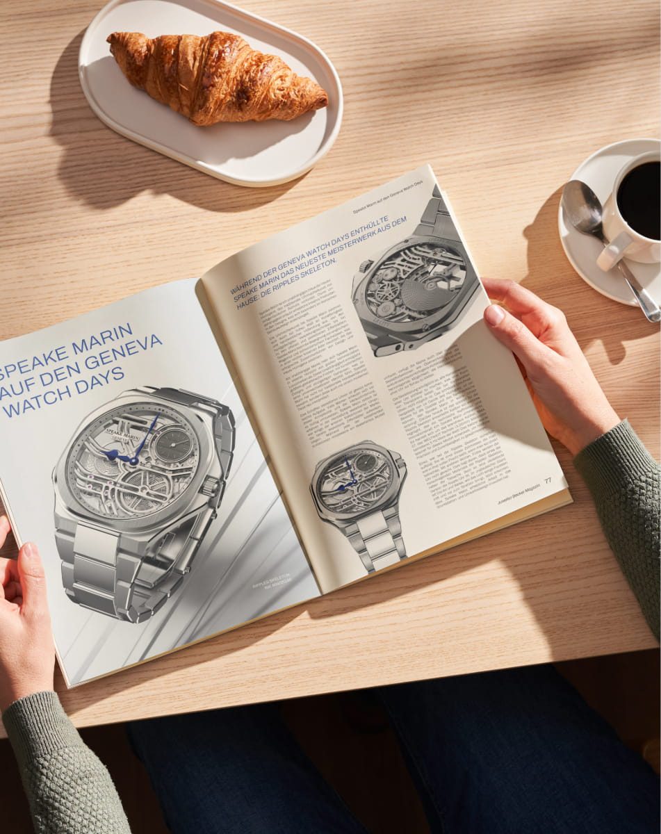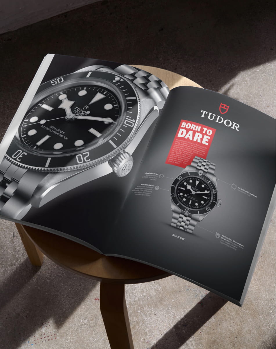 Die Gestaltung der redaktionellen Inhalte erfolgte in enger Abstimmung mit den Markenpartnern. Besonderes Augenmerk legten wir auf die spezifische Anzeigengestaltung, beispielsweise für Oris, um deren Markenidentität harmonisch in das Magazin einzubetten. Ein konsistentes Layout und hochwertiges Design sorgten für ein stimmiges, exklusives Erscheinungsbild.