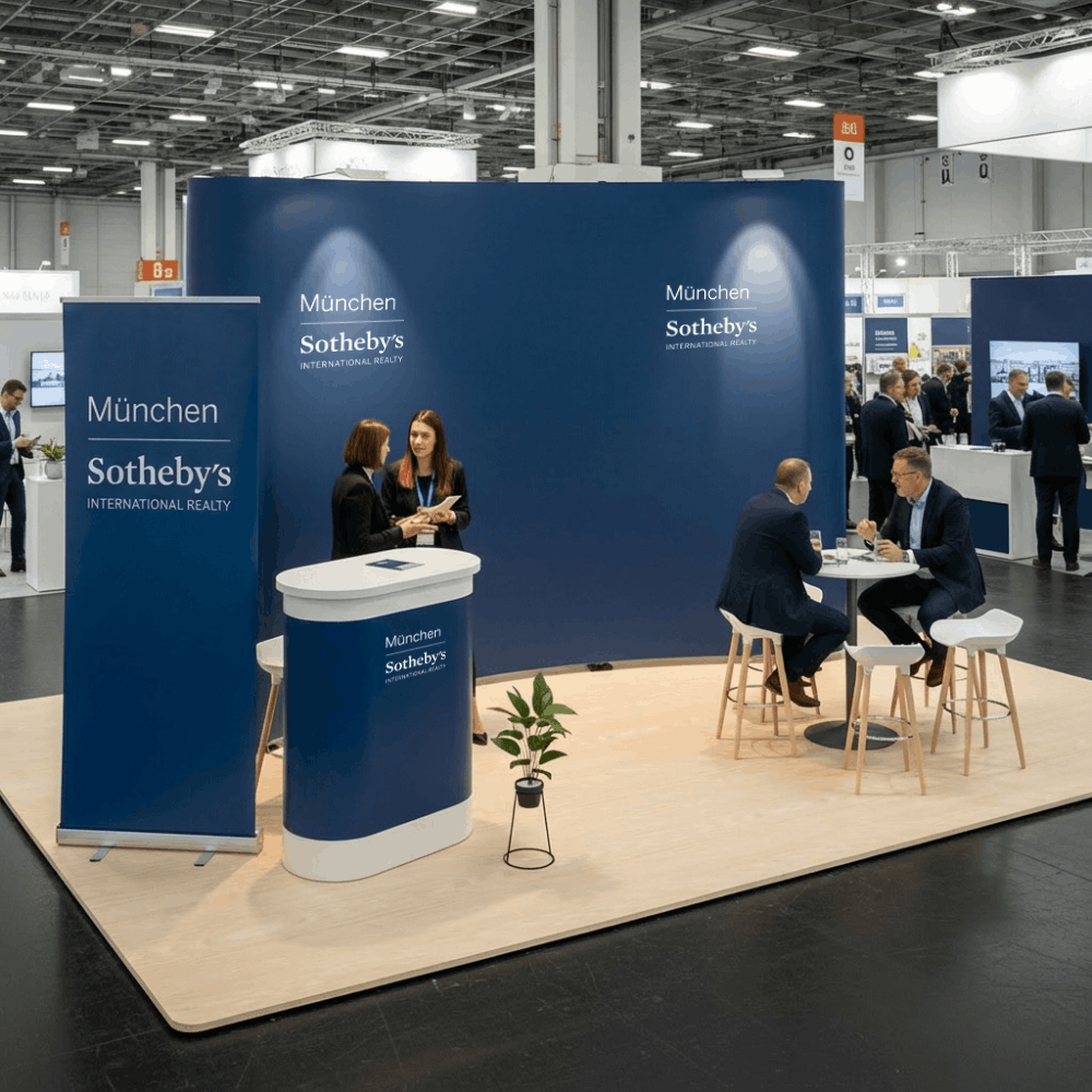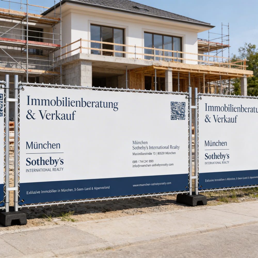 Für die Sichtbarkeit im physischen Raum und auf exklusiven Veranstaltungen entwickelten wir großformatige Werbelösungen und ganzheitliche Event-Setups. Das Spektrum reicht von Bauzaun-Bannern zur Objektankündigung bis hin zum kompletten Branding für Premium-Events. Mit Beach-Flags, Pop-up-Bannern und professionellen Messewänden wird eine konsistente Markeninszenierung garantiert, die den hohen Anspruch von Sotheby’s im öffentlichen Raum und vor Ort direkt erlebbar macht.