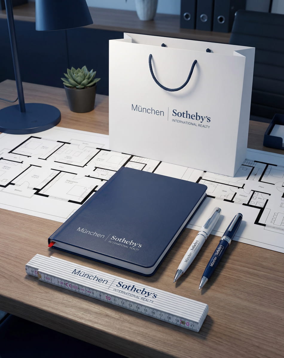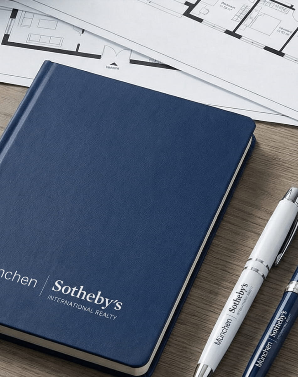 Die Wertigkeit der exklusiven Immobilien spiegelt sich in einer durchgängigen haptischen Kommunikation wider. Von klassischer Geschäftsausstattung wie Briefumschlägen bis hin zu hochwertigen Brand-Assets wie Notizbüchern und Textilien wurde ein visuelles Gesamtkonzept realisiert, das Souveränität vermittelt. Hochwertige Exposés, Broschüren und Projekteinleger unterstreichen durch präzise Typografie und ein elegantes Layout den Luxusstandard der Objekte innerhalb der globalen Markenvorgaben.